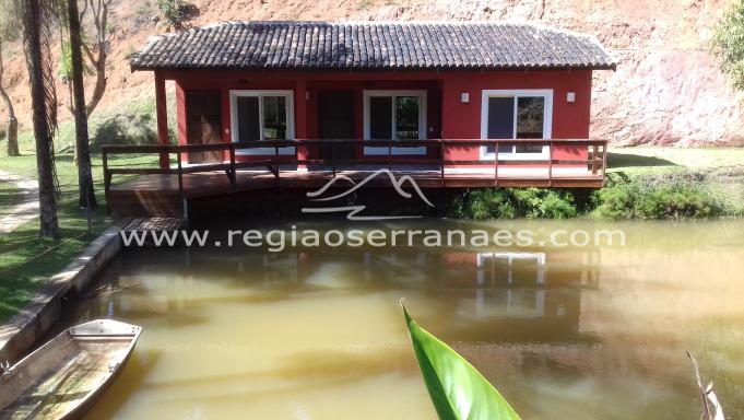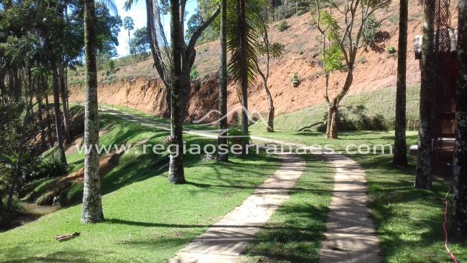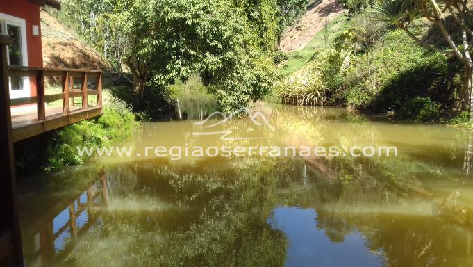 Domingos Martins, sitio com 14 alqueires, casa principal com 4 suÃtes,sala para tres ambientes quarto no subsolo, casa de caseiro,tres suites separadas para hospedes em frente o lago etc.O imovel possui cobertura florestal predominante e com estradas internas margeando os riachos que nascem no terreno.Distante 2 kms do asfalto.Agendar visita